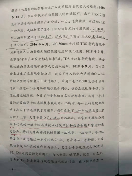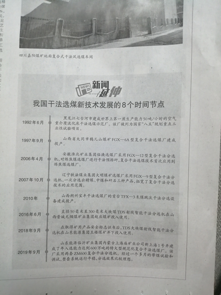 干法末煤跳汰机授道煤协会认可表扬